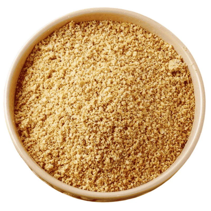 Farinha de amendoim (Arachis hypogaea) em formato a granel, obtida a partir de grãos selecionados, submetidos ao processo de tostagem e moagem fina. Este produto é 100% natural, apresentando aroma acentuado e sabor característico de amendoim torrado, com coloração levemente dourada.